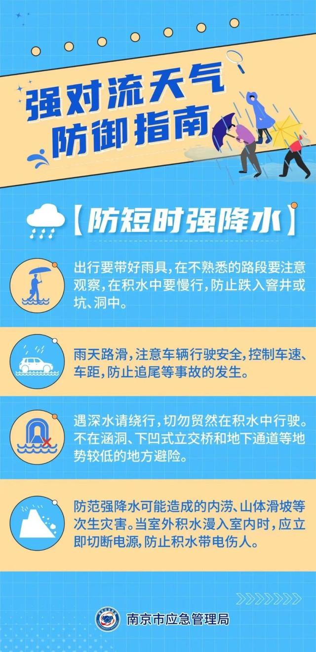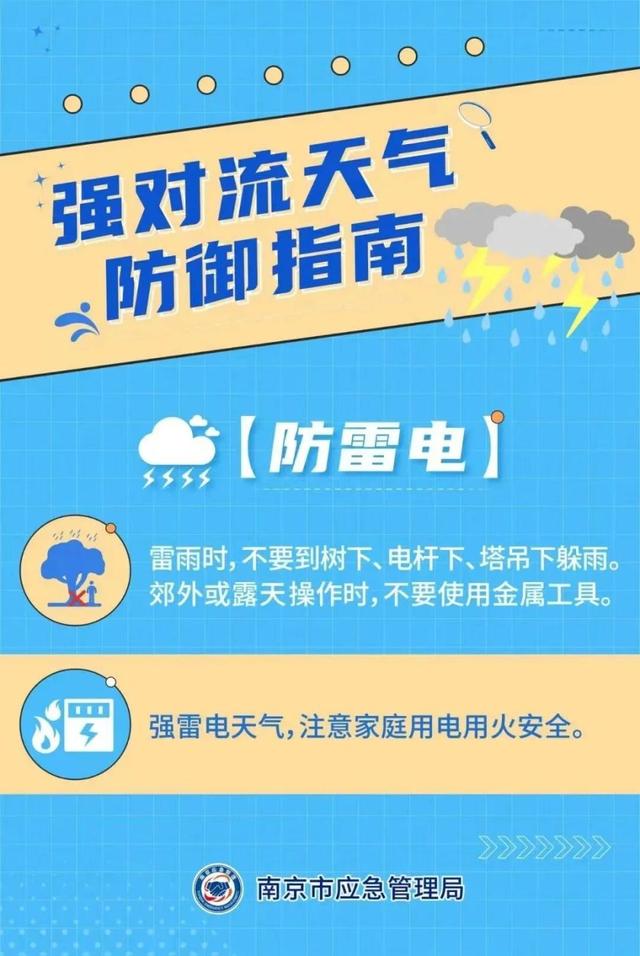 预计今天傍晚到上半夜,江宁区东部、主城区东部、六合区东部等部分街道(镇)将出现雷电并伴有7到9级阵风、短时强降水等强对流天气,请注意防范。
