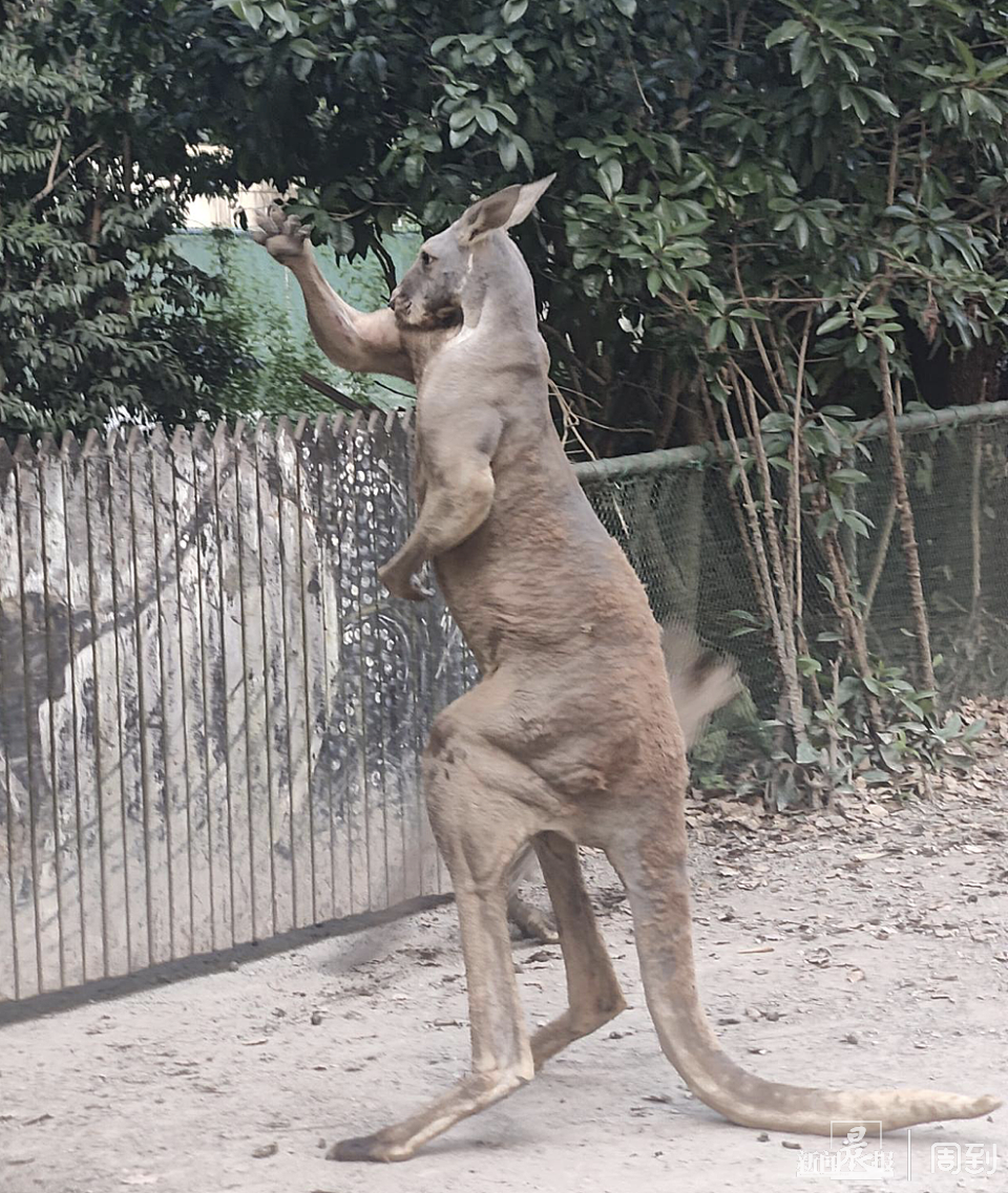 站立起身的袋鼠比篱笆高出近两个头