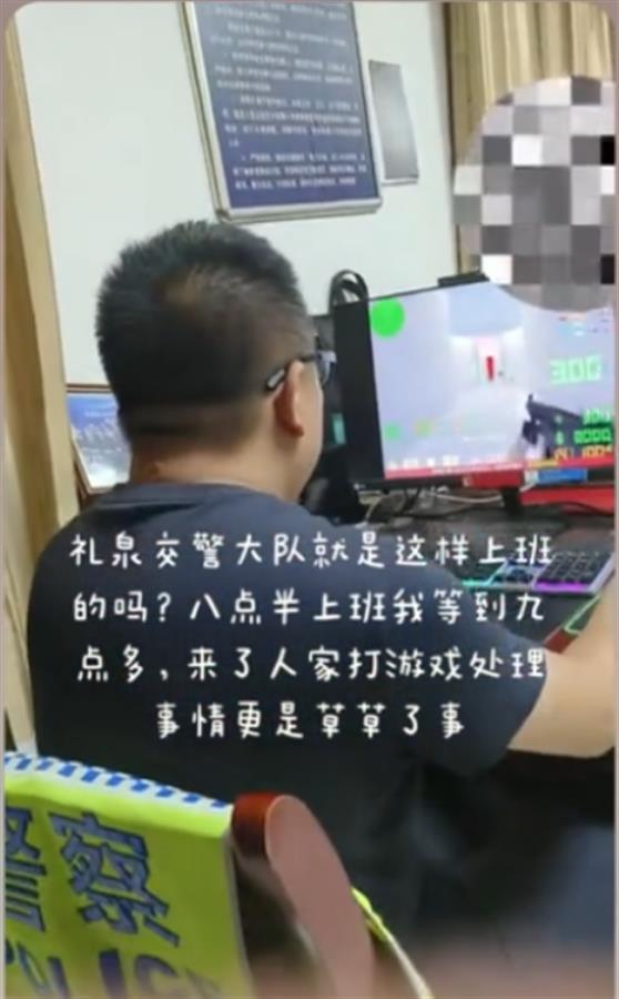 8月7日,有网友在社交平台发视频反映,陕西省咸阳市礼泉县交警大队工作人员上班时间玩电脑游戏。当天下午,礼泉县交警大队回应,网友反映情况属实,已经对涉事交警作出停止执行职务的决定。