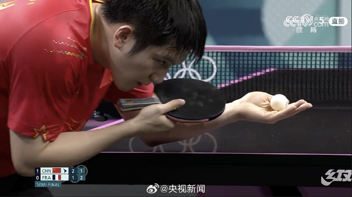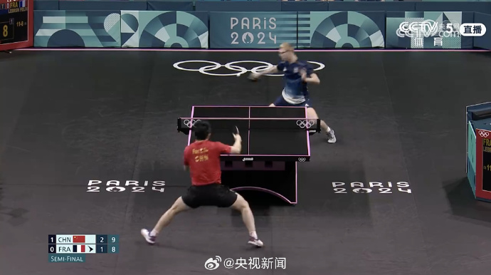 半决赛第二盘,中国队樊振东3:1战胜法国队F勒布伦。目前,中国队大比分2-0领先。