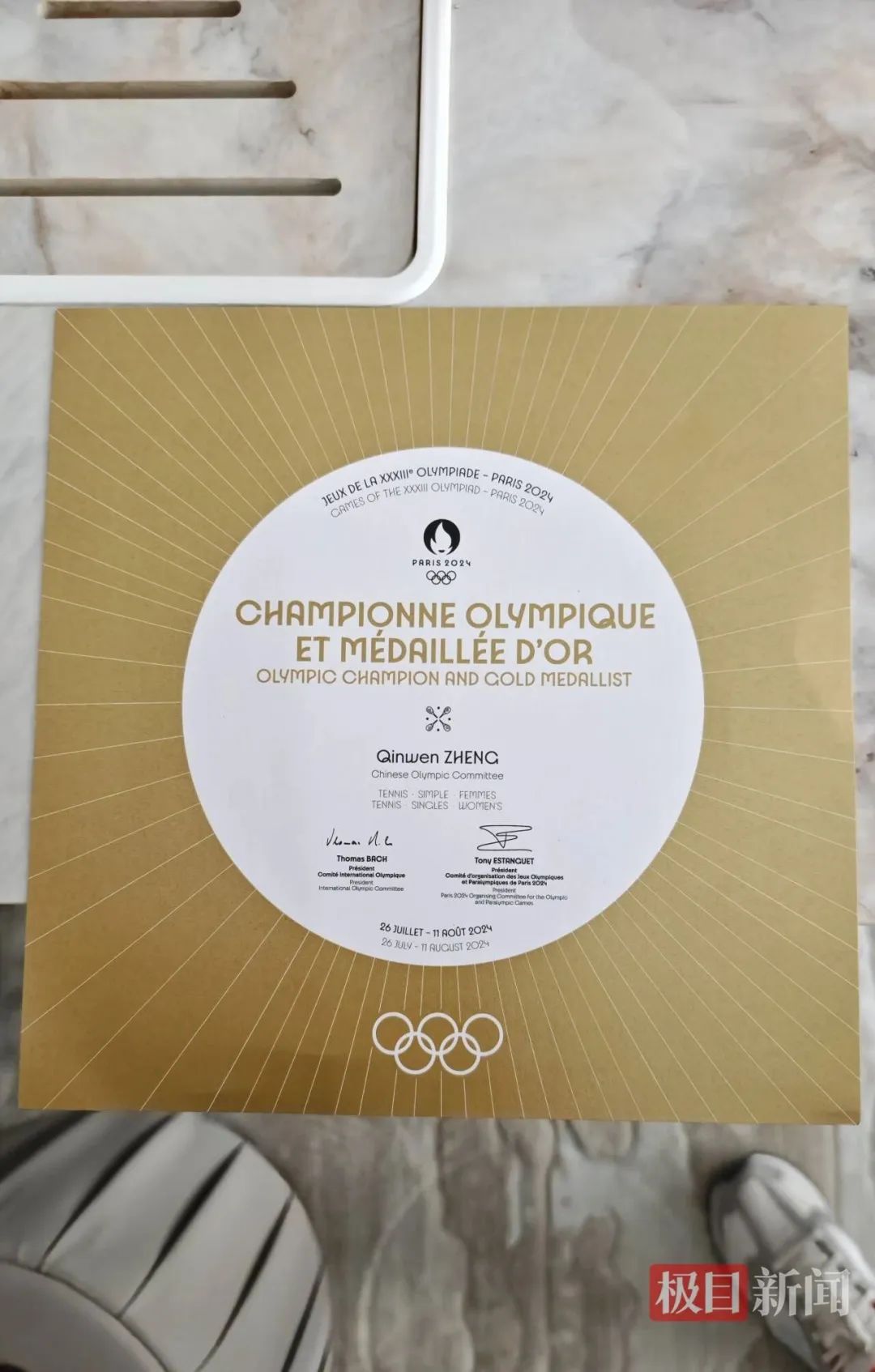 白喜林一行还带来了奥运会的获奖证书,中国网球协会的感谢信,并请郑钦文的父母发给女儿看。