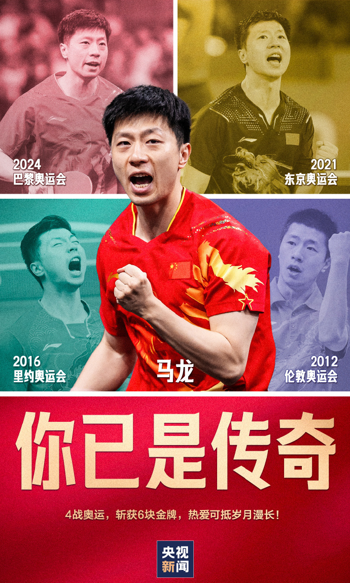 至此,35岁,四战奥运的老将马龙成为中国奥运史上首个“六金王”!