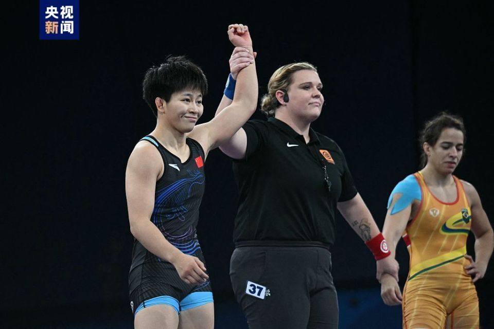 北京时间8月10日,在巴黎奥运会摔跤女子自由式57公斤级决赛中,中国选手洪可新夺得铜牌。