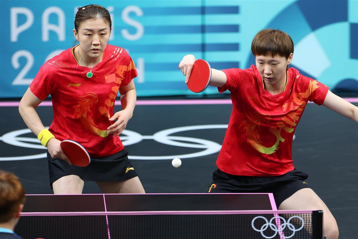 日本队在本届奥运会上收获不多,女团决赛是他们最后一搏的机会。在率先开始的女双对战中,早田希娜、张本美和一上来就开启了凶猛进攻,陈梦、王曼昱十分冷静,与对手见招拆招,双方打到2:2平。在第5局中,陈梦、王曼昱以5:9落后,王曼昱在这一阶段发挥神勇,与陈梦紧密配合连续追分,以12:10拿下关键局,战胜了日本组合。