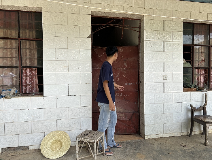 李健章所介绍的大象曾经过的地方,就位于香烟箐村小组的原址。“我们家的老房子就处在亚洲象迁徙和觅食的通道上,这扇铁门和这根柱子都是被大象撞的。”李健章指着断裂的房柱和变形的铁门说道。如今老房子的铁门堪堪能够虚掩上,每次推开都会发出“吱啦”的尖锐噪声。