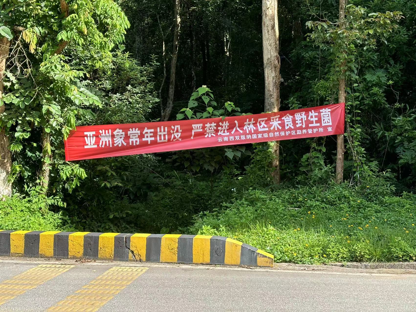 “亚洲象常年出没”的警示横幅