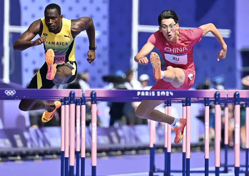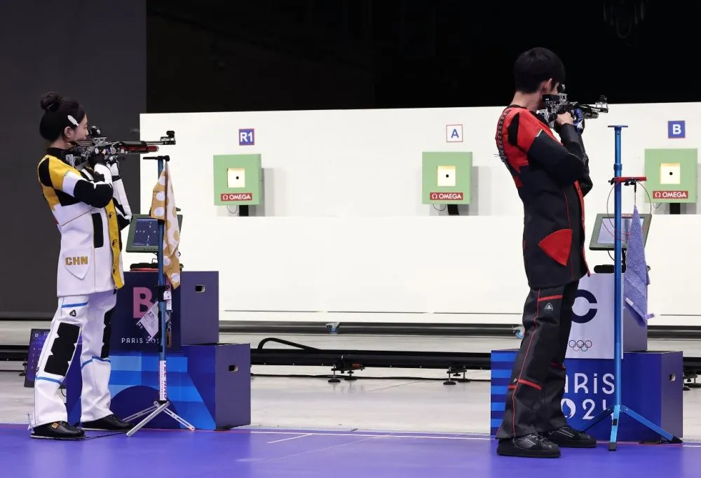 中国选手徐卓一(右)在巴黎奥运会比赛中。新华社记者 吕小炜 摄
