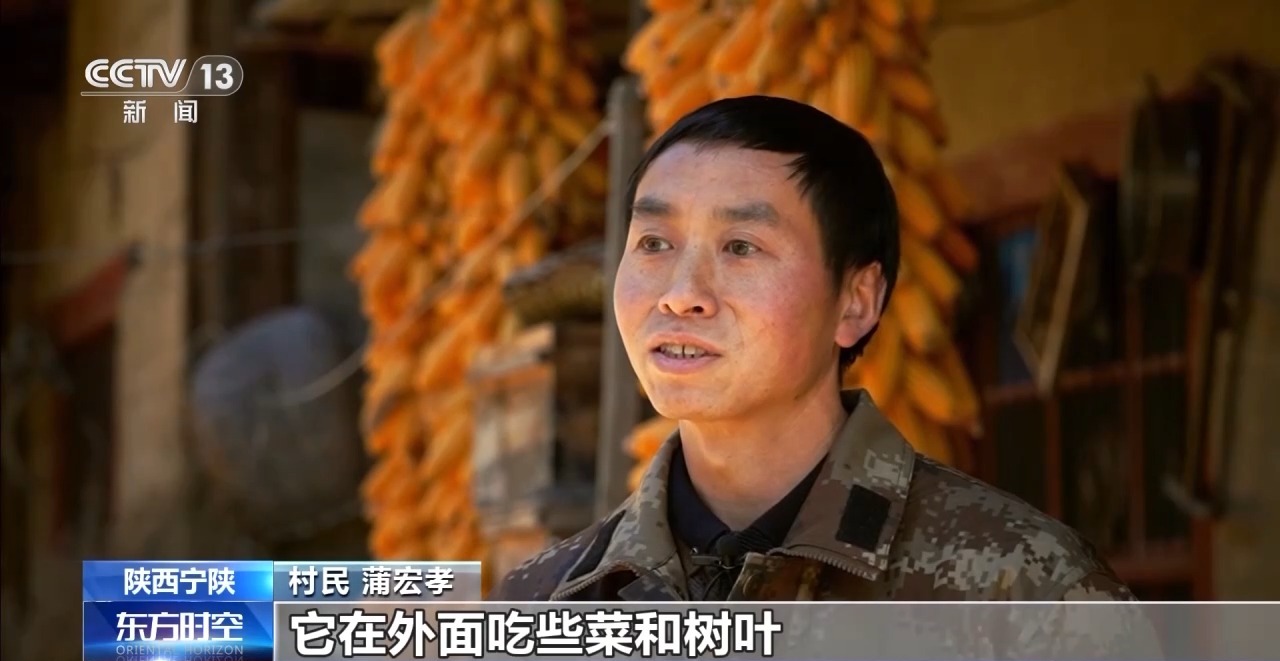 村民 蒲宏孝:从17日以来,它每天晚上都来,天一黑就来,天亮之前就离开了。我从窗户看它,它来了就吃些菜和树叶。