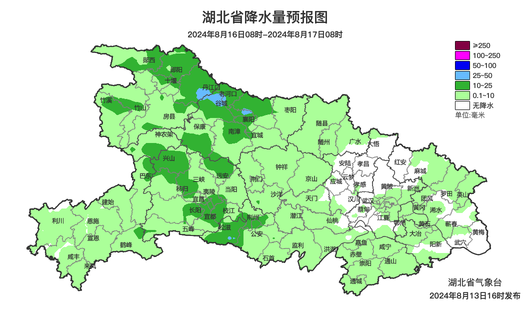 2024 年 8 月 13 日 17 时—8 月 14 日 20 时,预计黄石地区,恩施(来凤东北部、宣恩南部、鹤峰南部和东部)、鄂州(鄂城区)、咸宁(通城、通山)、黄冈(黄州区东北部、红安中西部和东北部、麻城中东部、团风南部、罗田、英山、浠水、蕲春、武穴、黄梅)以及其他强降水区域发生崩塌、滑坡、泥石流的风险较大。
