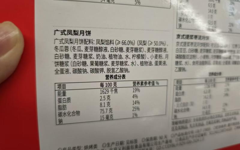 新京报记者走访市场发现,目前上市的一些品牌月饼已按照《月饼质量通则》要求明确标注配料含量。如苏州稻香村一款苏式五仁月饼,馅料含量标注为≥45%,“按配方计算,馅料中果仁总添加量为20%”;该品牌另一款苏轼玫瑰月饼,馅料含量标注为≥22%,“按配方计算,馅料中糖玫瑰折算成重瓣红玫瑰的添加量为10%”。义利一款月饼礼盒中的广式蛋黄白莲蓉月饼,配料表标注为白莲蓉馅料≥57.5%(莲子≥60%),咸蛋黄≥8.5%;礼盒中的广式凤梨月饼,配料表标注为凤梨馅料≥66%(凤梨≥50%)。