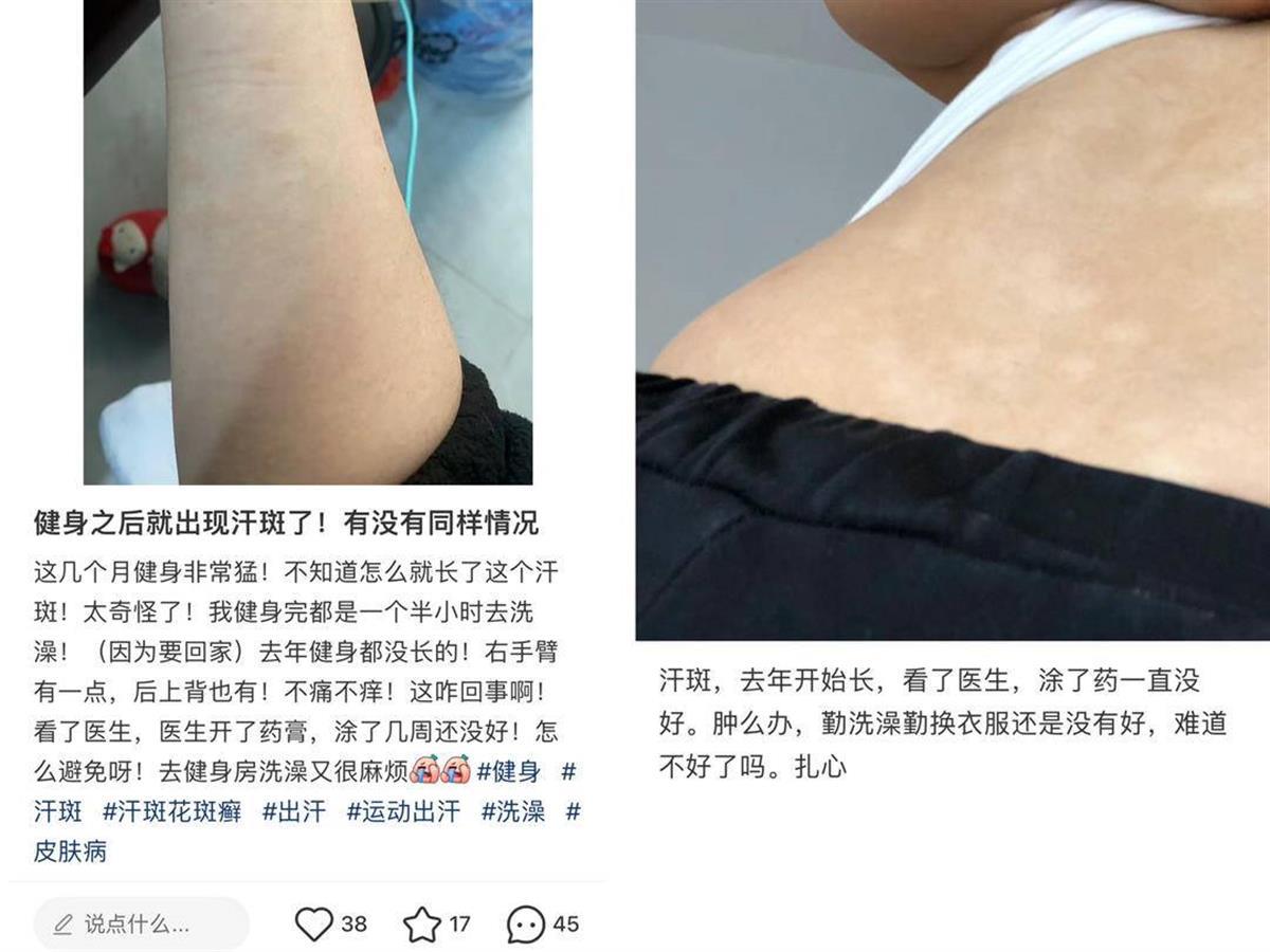 “健身后就出现白色的斑块,有没有同样的情况!”近日,“健身后出现汗斑”的话题登上热搜,引发网友热议。那么,出现汗斑后还能继续运动吗?8月17日,武汉专家表示,对于已经出现汗斑的人群,也是可以运动的,但最好减少高强度运动。