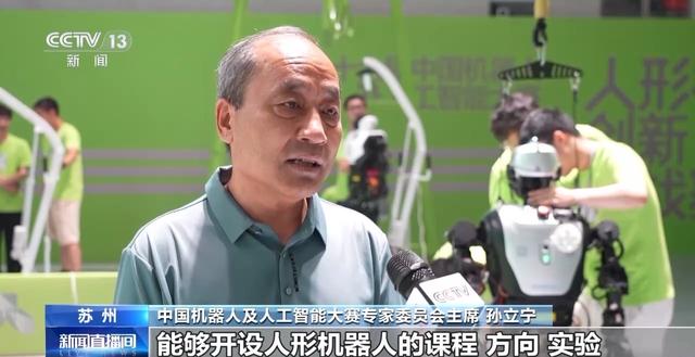 中国机器人及人工智能大赛专家委员会主席 孙立宁:这也是第一个国家白名单赛事的人形机器人大赛。通过它的带动使得各个高校和学校,能够开设人形机器人的课程、方向、实验。会带动一批的创新人才,为我国高端机器人研发提供创新人才。