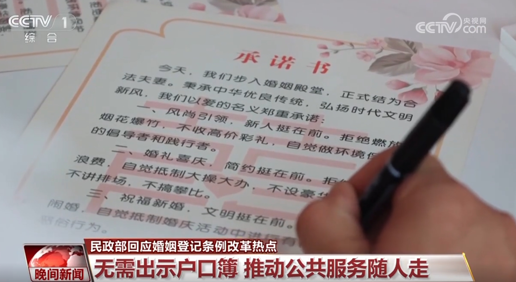 央视网消息:民政部日前就起草的《婚姻登记条例(修订草案征求意见稿)》公开征求社会公众意见。其中,婚姻登记取消户口簿、离婚冷静期等规定引起广泛关注。来看民政部相关负责人的最新回应。