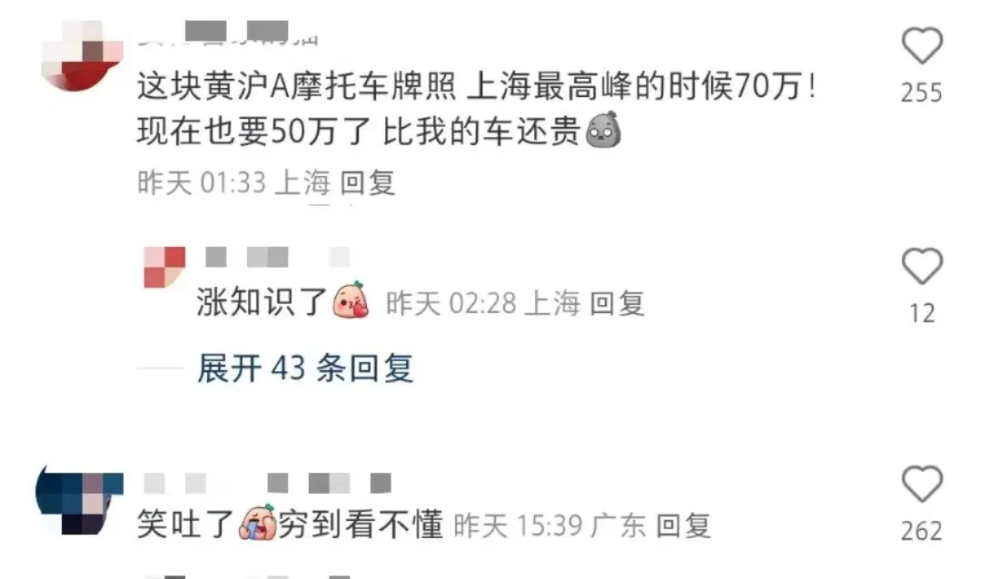 白女士介绍:“摩托车黄牌已经在上海停发了,属于有价无市,最高卖到过70万,近期价格有所回落,也要50多万元。”