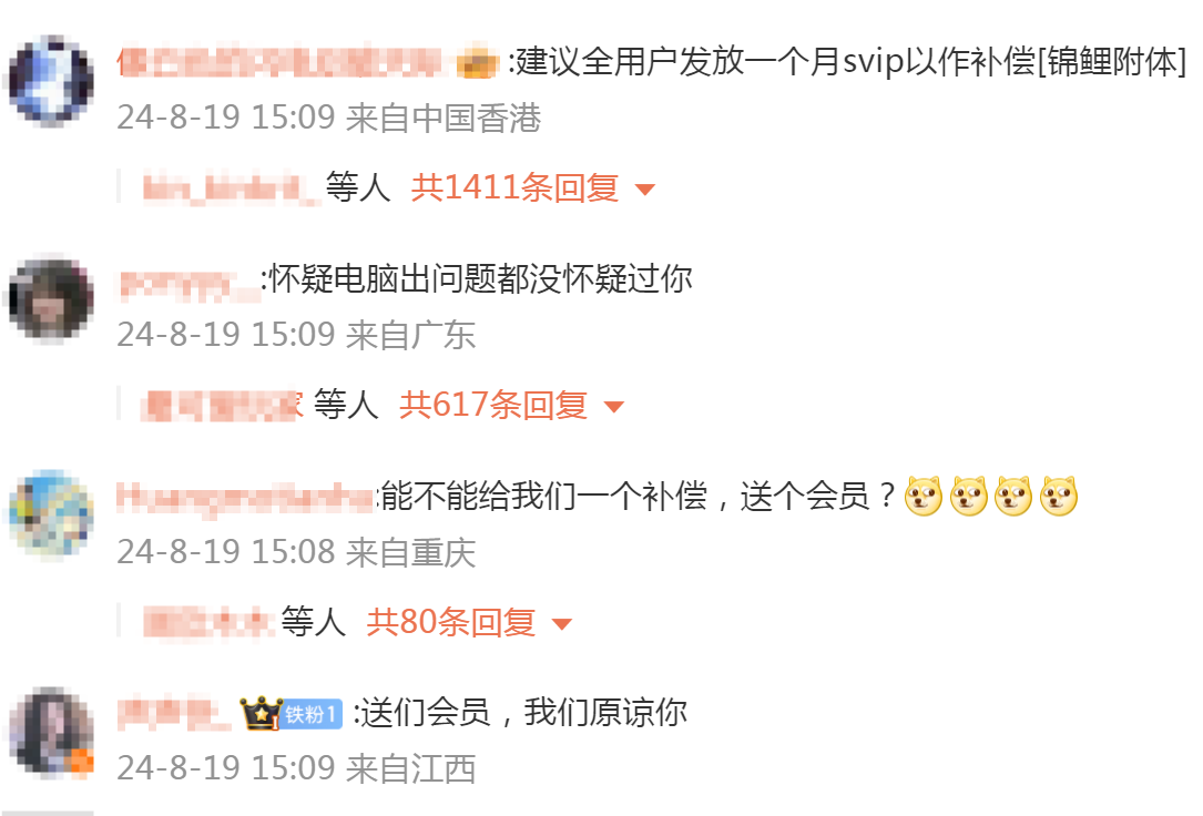 网友们抓住机会,纷纷留言,“送用户会员我就原谅你”“能送会员吗”