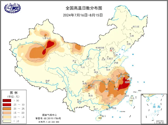 南方地区受持续高温天气影响。7月3日以来的高温过程持续影响我国南方地区,具有影响范围广、持续时间长、极端性强等特点。7月16日以来,江南大部以及重庆等地高温日数有20至25天,浙江大部、江西东北部以及福建北部等地超过25天;浙江大部、江西东北部、安徽东南部、江苏南部等地最长连续高温日数有15至20天。之后受台风“格美”影响,南方高温天气得到短暂缓解,7月28日开始,江南、江淮、黄淮等地的高温天气再次出现。8月14日以来,江淮、江南、华南等地出现分散性强降雨,南方地区的大范围持续高温天气得到缓解。