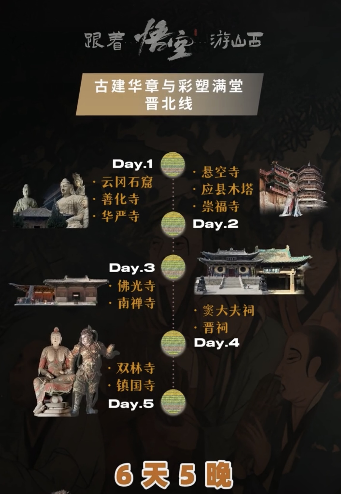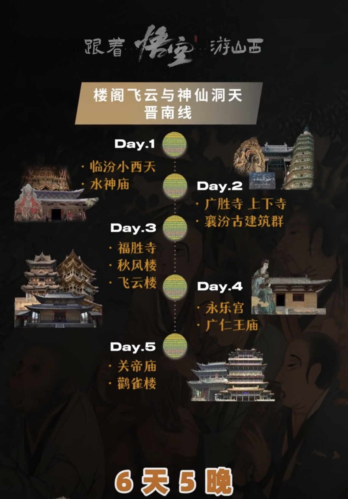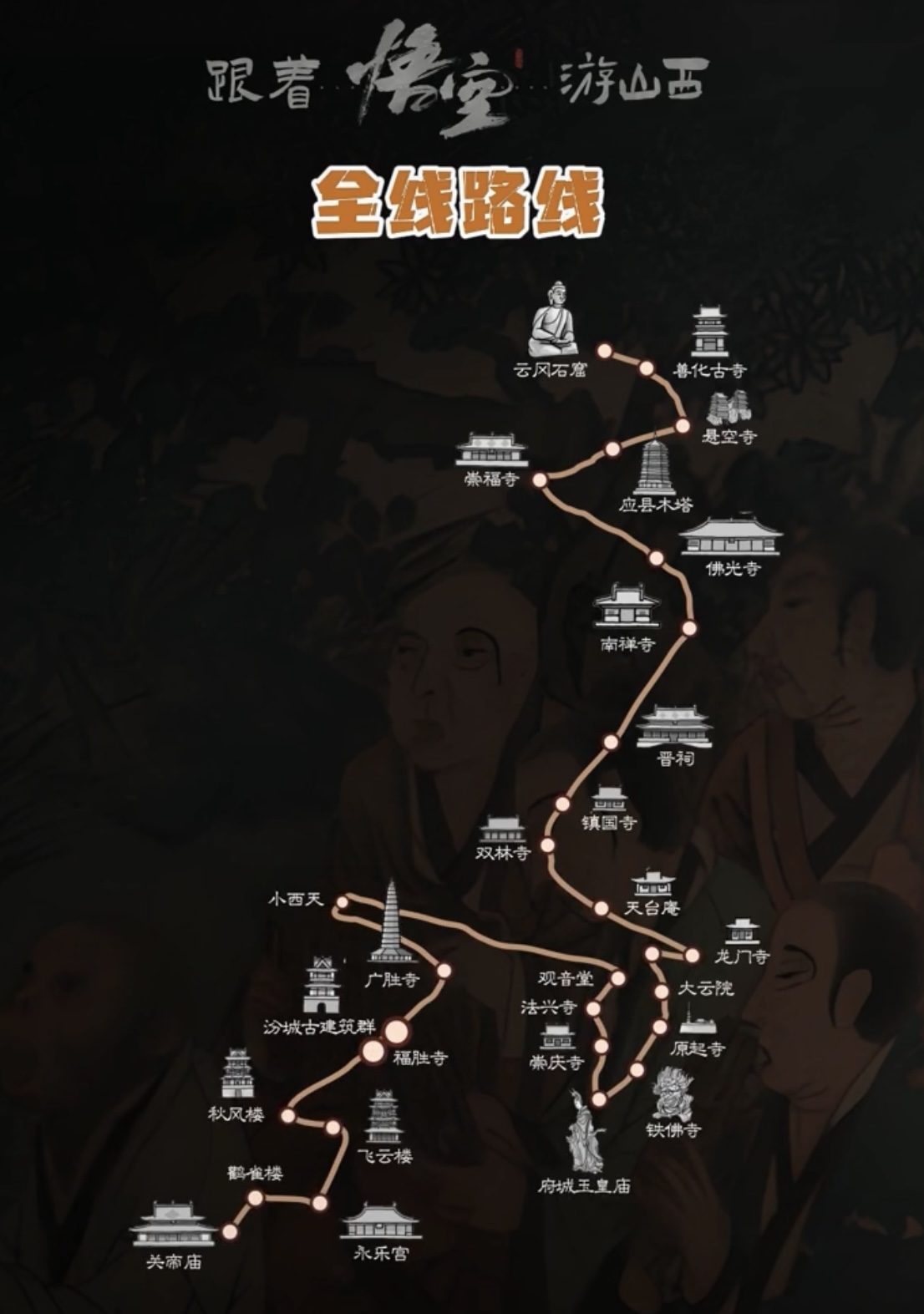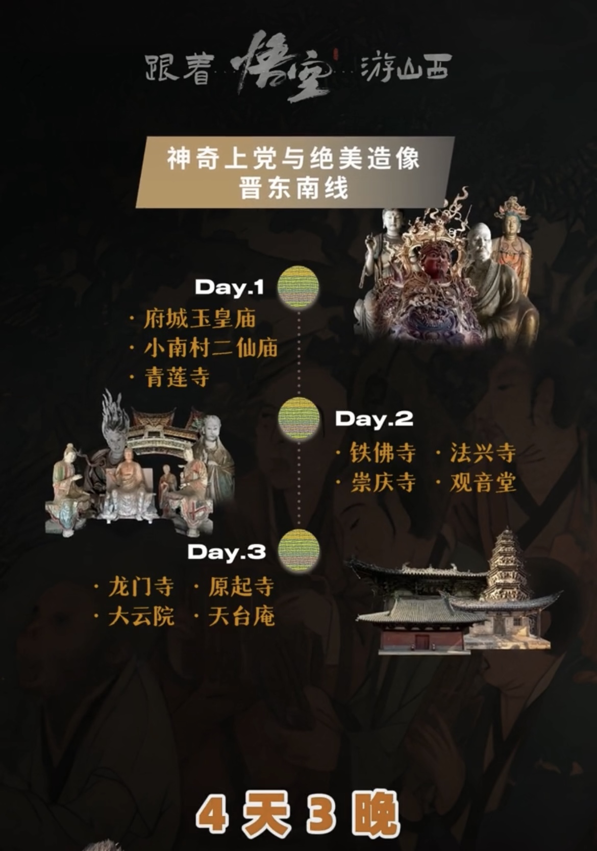 8月22日,2024数字文旅品牌创新大会在太原举办。开幕式上,山西省文化和旅游厅发布“跟着悟空游山西”主题路线,包括全线线路、“6天5晚晋北线”“6天5晚晋南线”“4天3晚晋东南线”以及自驾路线,包含游戏中“出镜”的小西天、玉皇庙、崇福寺、佛光寺......