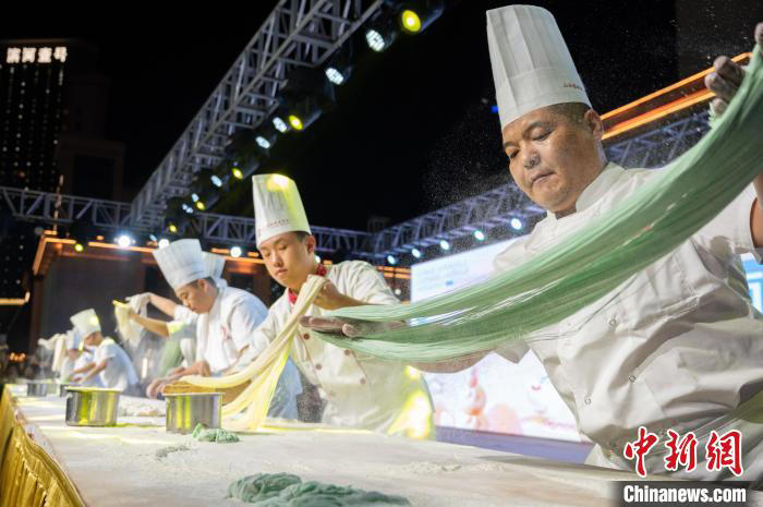 面点师进行“龙须拉面”非遗面食技艺展示(中新社记者 韦亮摄)