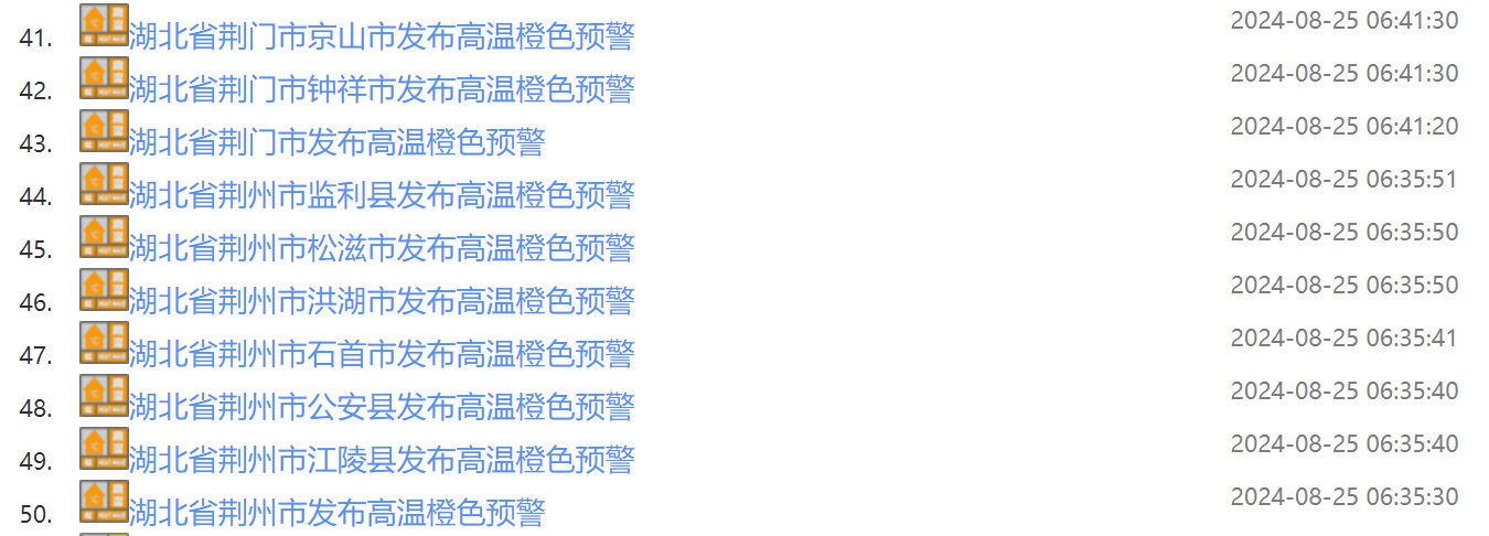 湖北再发50条高温橙色预警