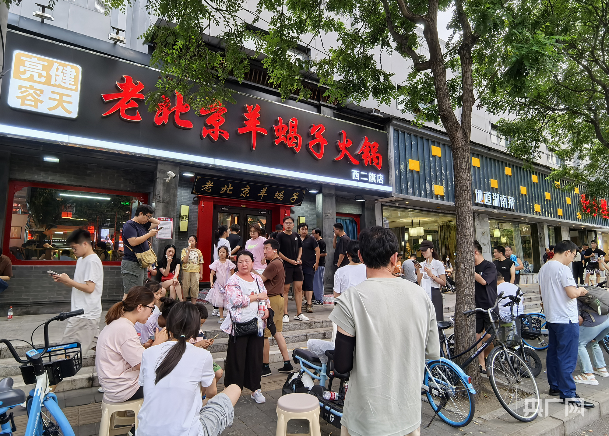 火锅店前聚集了大量等待用餐的顾客(央广网记者阮修星摄)