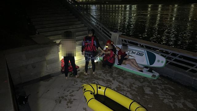 8月24日晚,在江中利用舢板、充气皮划艇漂流的7名宜宾市民就在长江遇险无法靠岸,其中包括一名2岁幼儿。宜宾市红十字应急救援队、宜宾市酒都应急救援队、宜宾蓝豹救援队联手施救,7人才得以平安上岸。