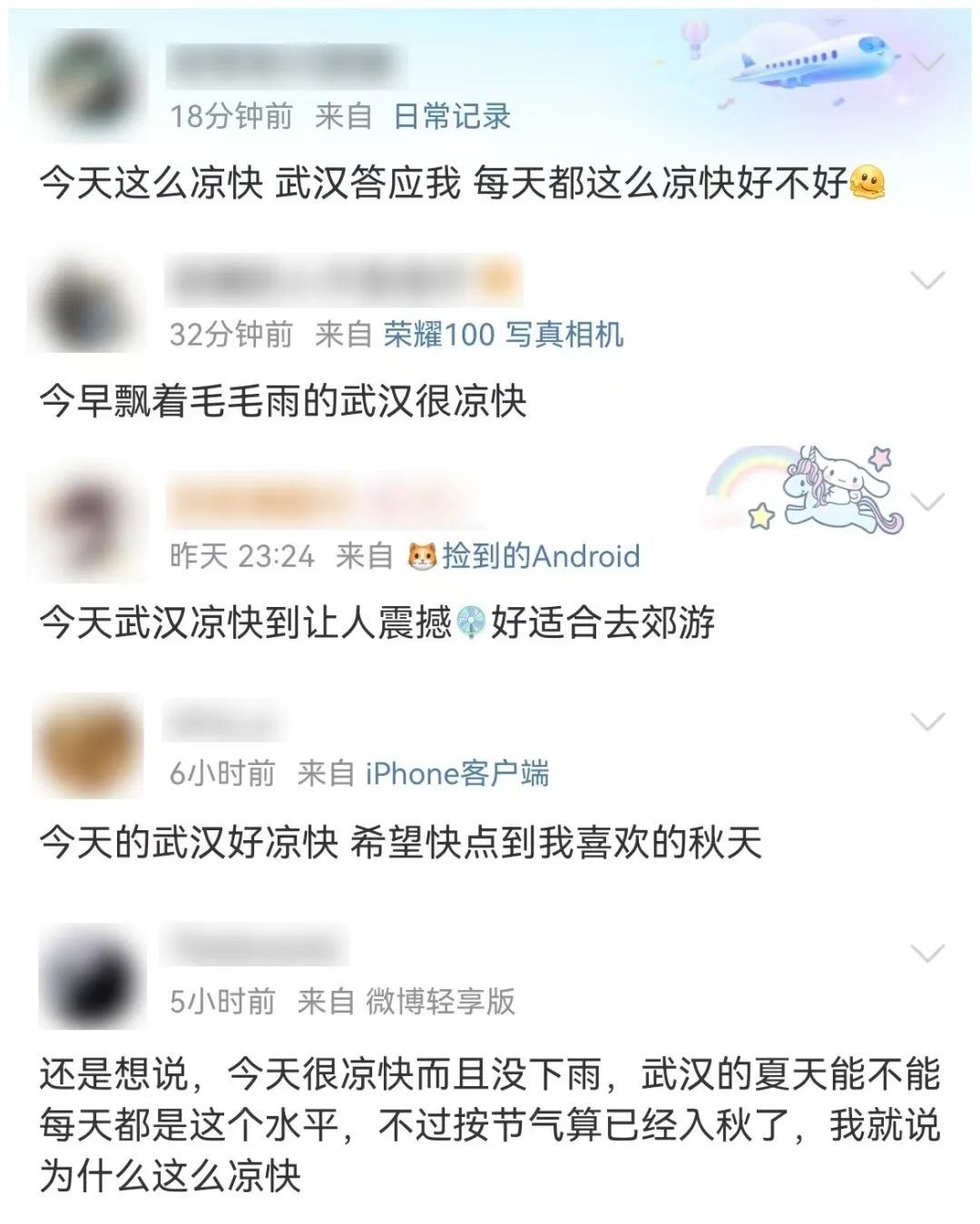 昨天武汉最高气温为31.7℃,最低气温为23.8℃,创八月以来的新低。