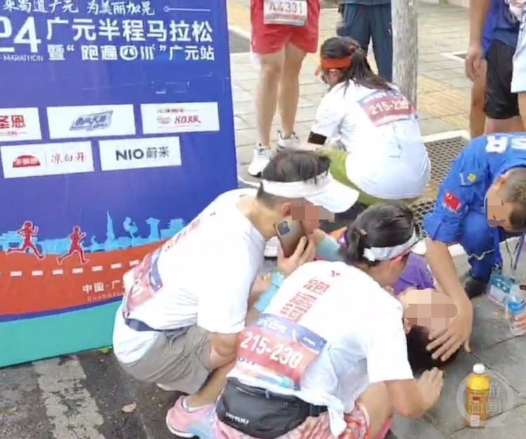 上游新闻(报料邮箱:baoliaosy@163.com)记者在相关视频中看到,一位女性跑友倒在路边,部分跑友协助赛事工作人员在为做降温处理。视频拍摄者一边拍摄一边说:“晕倒一个,可能是中暑了。”另一条视频显示,不少跑友在赛道路边一家副食店买水喝。