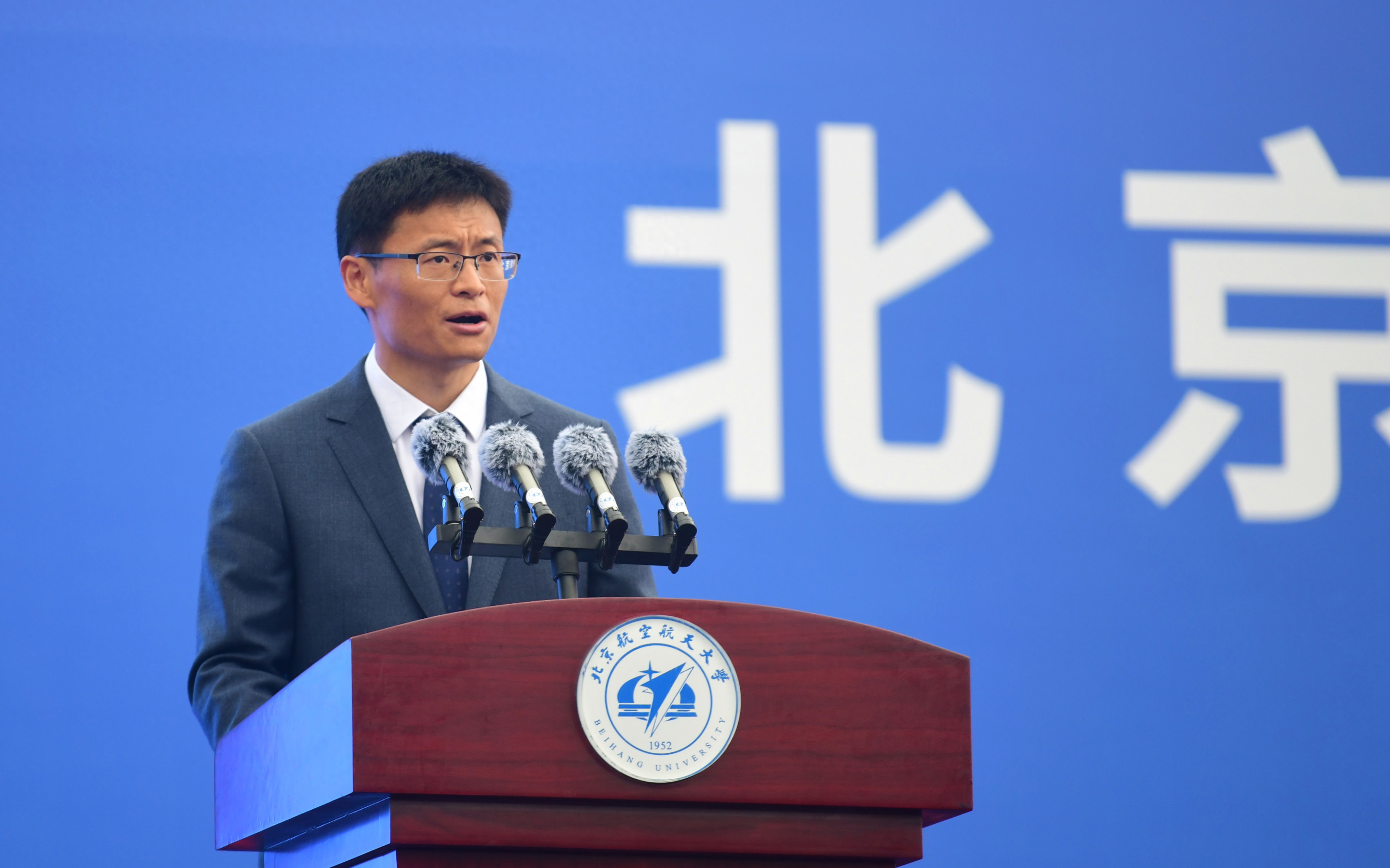 北京航空航天大学校长王云鹏代表学校全体师生对12536名新“北航人”表示祝贺与欢迎。他阐述了“空天报国”这一学校最为鲜明的精神底蕴,回顾了北航七十二年来创新图强、初心未改,矢志不渝为国铸器、育栋梁的办学历程。