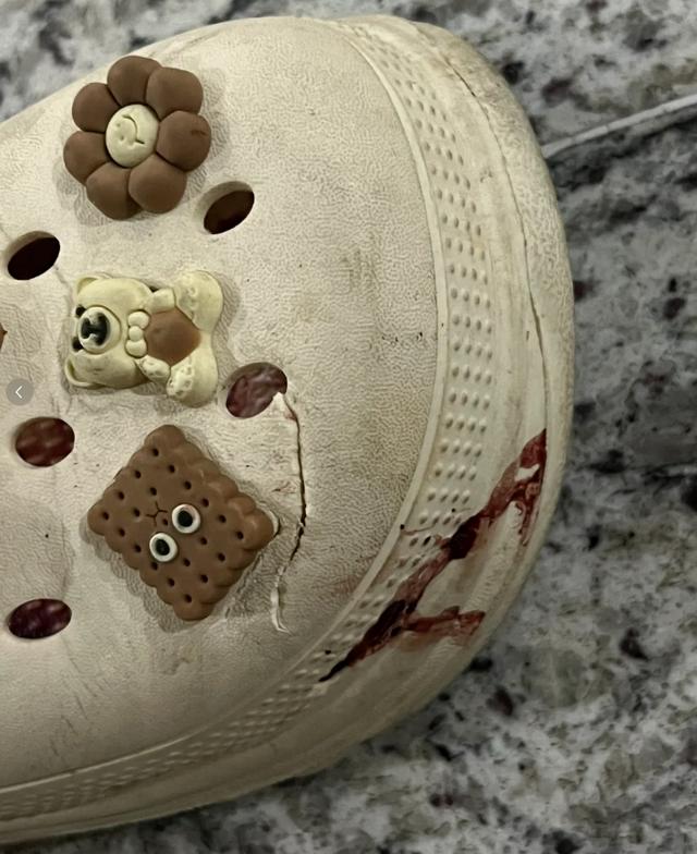 孙先生脱下妻子拖鞋发现,她的右脚第3脚趾已经断裂,第4根脚趾仿佛被拍扁,血流如注,骨头清晰可见。