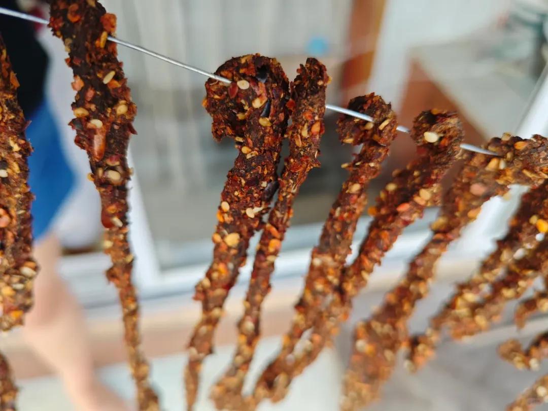 陈女士告诉记者:“晒好的牛肉干,蒸熟后食用,吃不完的,再晾干通风一晚上,就可以装袋了,建议放冰箱冷藏保存。”最后,她还给记者算了一笔账,“新鲜牛肉38元/斤,买了4.7斤,合计约180元。晒好的牛肉干1.8斤左右,约100元/斤。”陈女士说:“现在已经做好第二批牛肉干,还是五香味的,特别好吃。明年打算晒葡萄干,可能要多晒两天。”