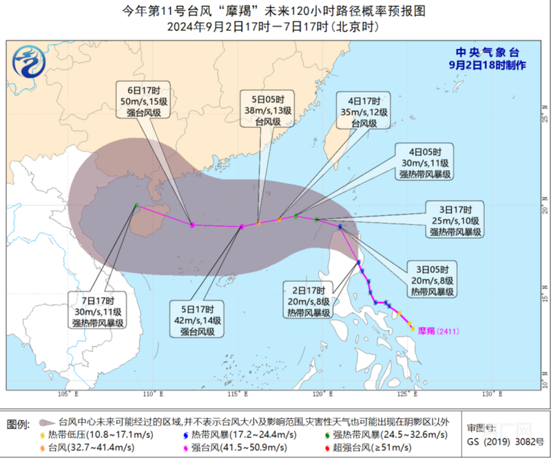 台风“摩羯”未来120小时路径概率预报图(央广网发图片来自中央气象台官网)