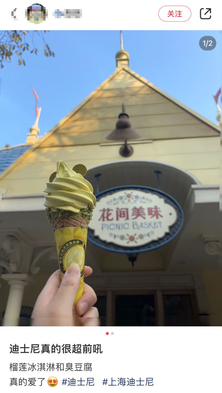 近日,有网友在社交媒体晒出迪士尼上新美味——黑豆腐和榴莲冰淇淋!