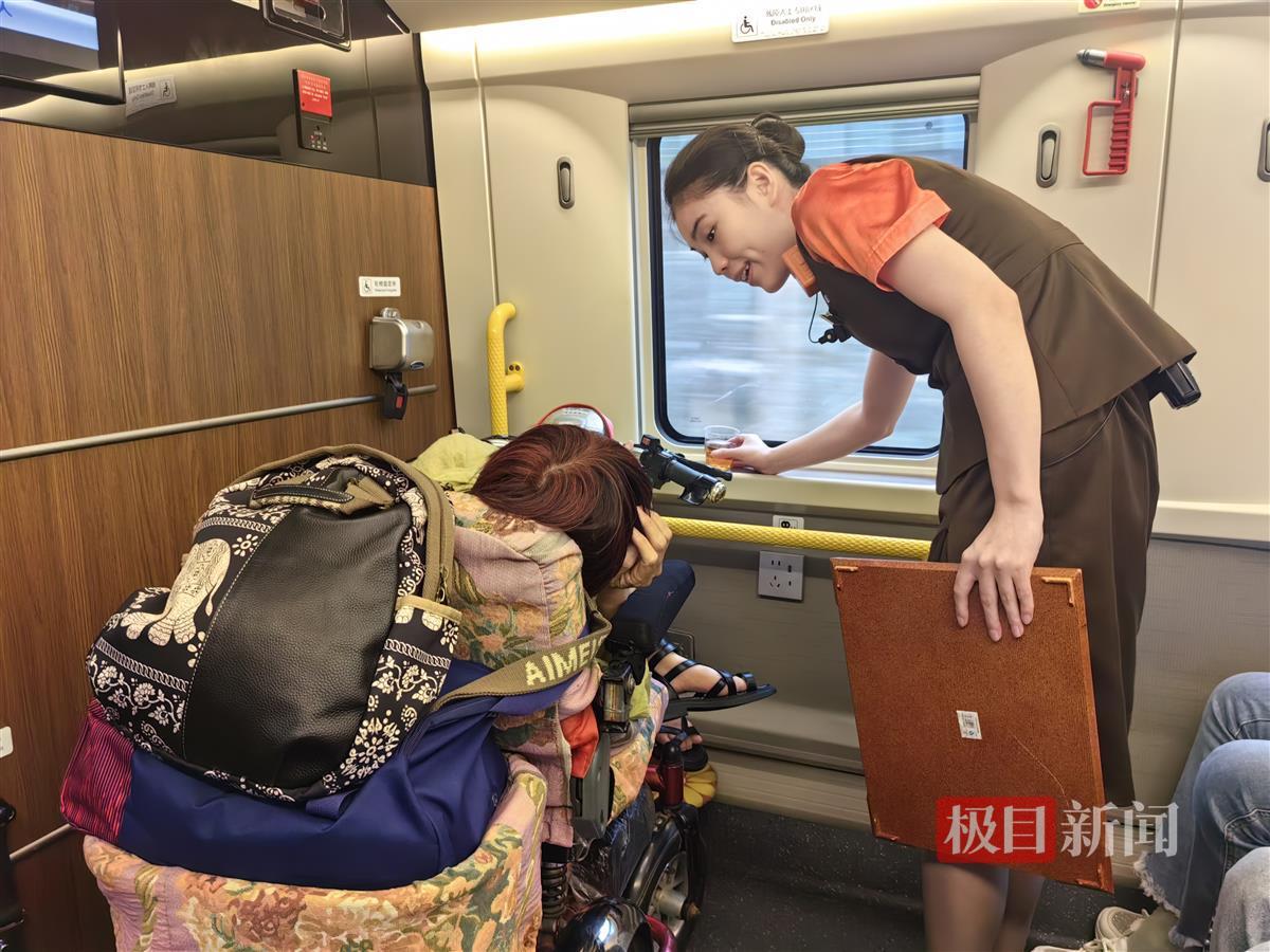 上车后,张颐怡将四名旅客送至座位上,又帮忙协调换到了人较少且离卫生间较近的座位,开车后,列车员将她们的电动车妥善放置在大件行李处,并为她们介绍了车厢内的服务设施,为她们送上茶水,途中一直多加关照,列车长又为其联系了出站引导服务,终到武汉后,张颐怡帮她们拿取行李,并将她们扶至轮椅电动车上,才放心离去,四名旅客表示非常感谢列车工作人员的贴心照顾。并为高铁的温馨服务点赞!