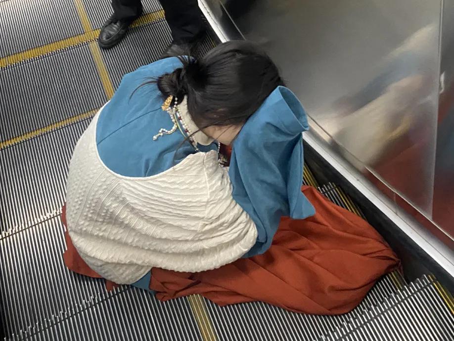 2023年5月,江苏苏州,两名女子在旅游期间,因为旅游劳累,乘坐扶梯未收拢自身穿的汉服,导致汉服被卷进入扶梯,所幸工作人员及时按下紧急制动按钮,将被卷住的裙子剪下来,让女孩顺利“脱困”。