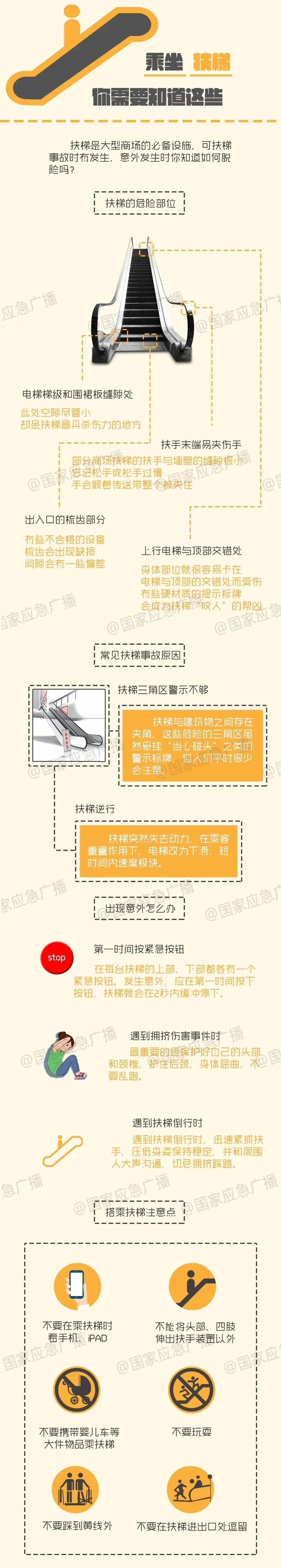 自动扶梯方便了我们生活的同时,也存在许多安全隐患,那么乘坐扶手电梯时要注意哪些事项呢?以下这份乘坐扶梯安全小贴士,请收藏学习转发。