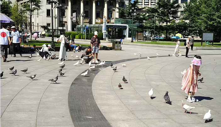 大连中山广场见证了城市的历史变迁,已经成为大连文化的象征符号之一。广场上成群的鸽子象征着和平与和谐,同时也是城市的一道风景线。不少市民和游客慕名而来观赏“广场鸽”,鸽子时而在空中盘旋,时而落在游人肩头,人与动物和谐相处的画面忍不住让人驻足停留。