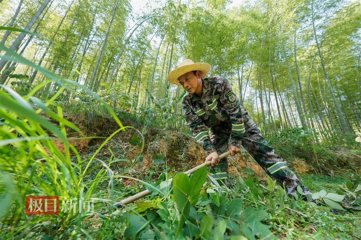 早七晚六,是护林员鲁亚林和同事固定的进林巡查时间,眼下防火工作紧张,他们只要没事就钻进竹林,捡拾枯枝、清除杂草。“我们的工作没有巧,防火、防虫害......踏踏实实像守护自己的孩子一样。”一代代护林员坚守下,楠竹场四季常绿,自建场以来,没有发生过一起火情。