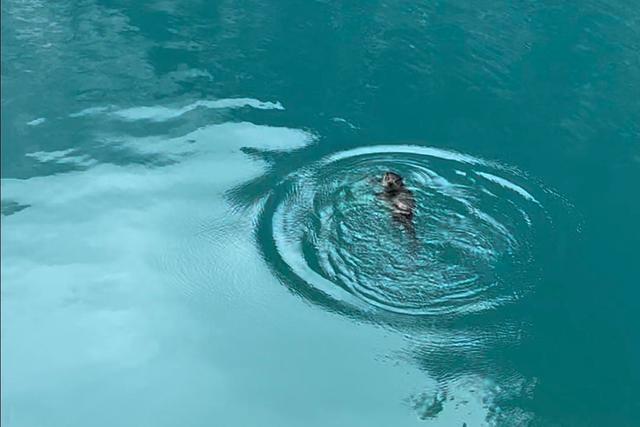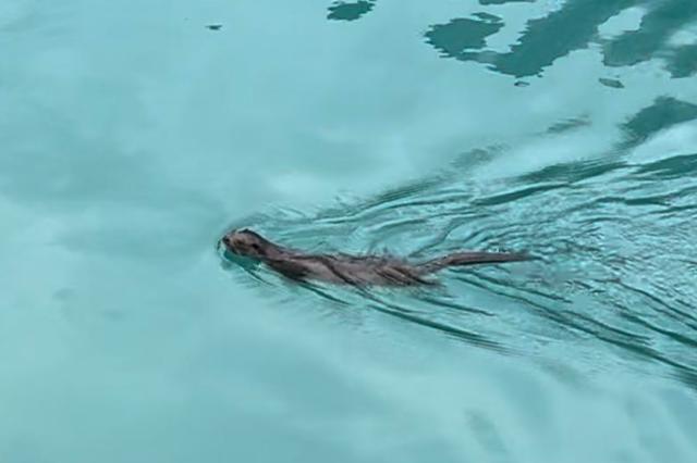 当天上午11时27分,他们一行穿过熊猫海隧道时,愿望真的实现了:公路边一群人欢呼“看,水獭”,只见一只水獭正在水里四处游动。“哇,好可爱哦,它还会仰泳!”在游客惊叹声中,它脚一蹬,丝滑地钻入水中捕鱼,一会儿又浮出水面。“我们看到它抓到了两条鱼!”小胡激动地说。