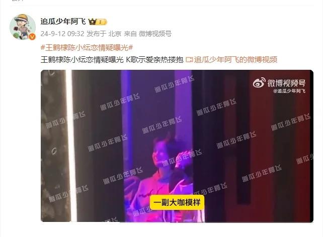 9 月12日,有八卦媒体晒出王鹤棣与陈小纭一起在KTV包厢唱歌的视频,配文:" 王鹤棣陈小纭恋情疑曝光 K 歌示爱亲热搂抱 "。