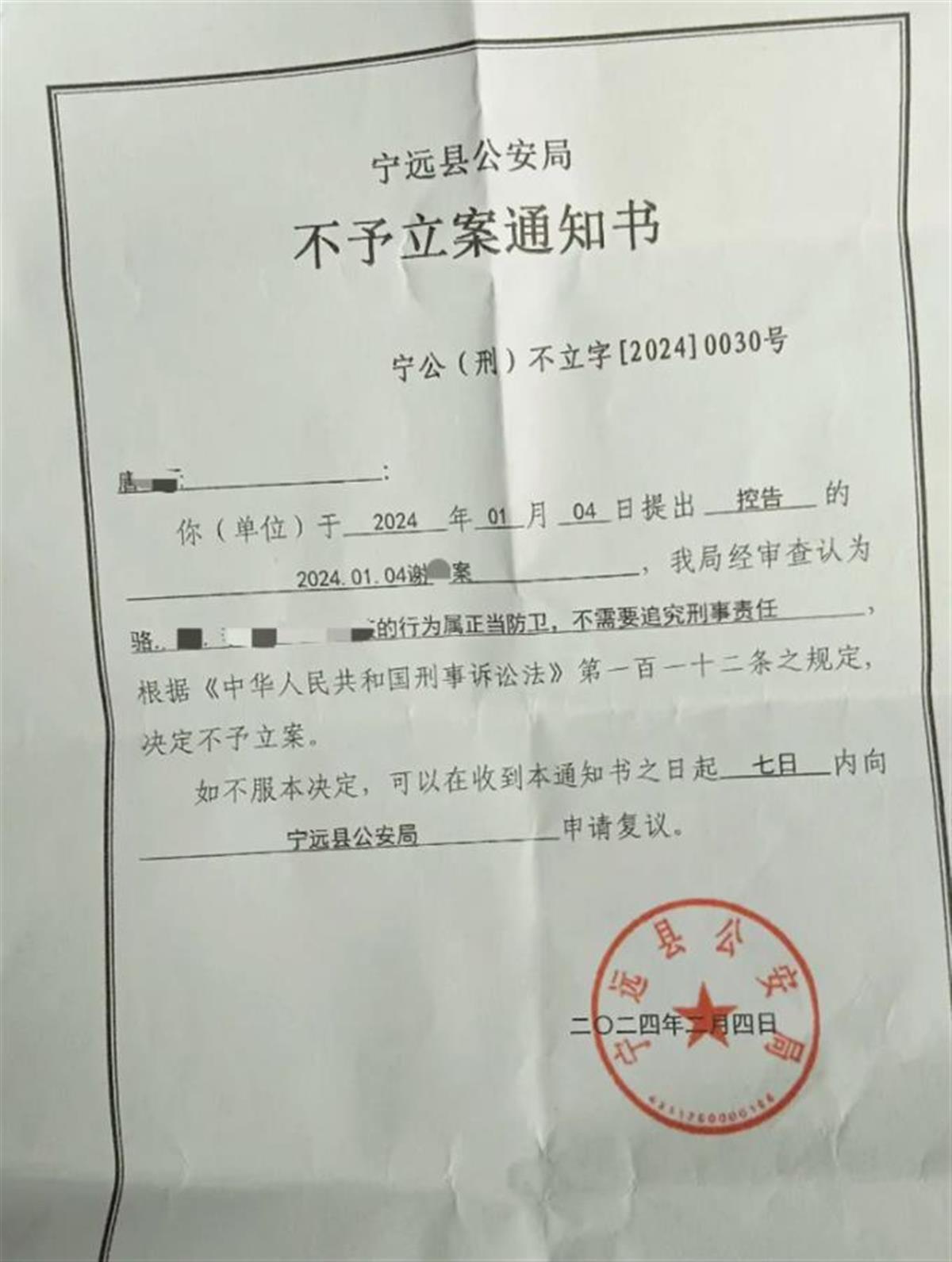 今年1月,湖南省永州市宁远县发生一起命案,谢某和邻居发生冲突,打斗中谢某进入邻居家中持折叠刀刺伤两人,之后被邻居三人反杀。事后,当地公安局做出了不予立案通知书,认定邻居骆某三人的行为为正当防卫,不予刑事立案。近日,媒体对此进行了调查采访。(据9月12日红星新闻报道)