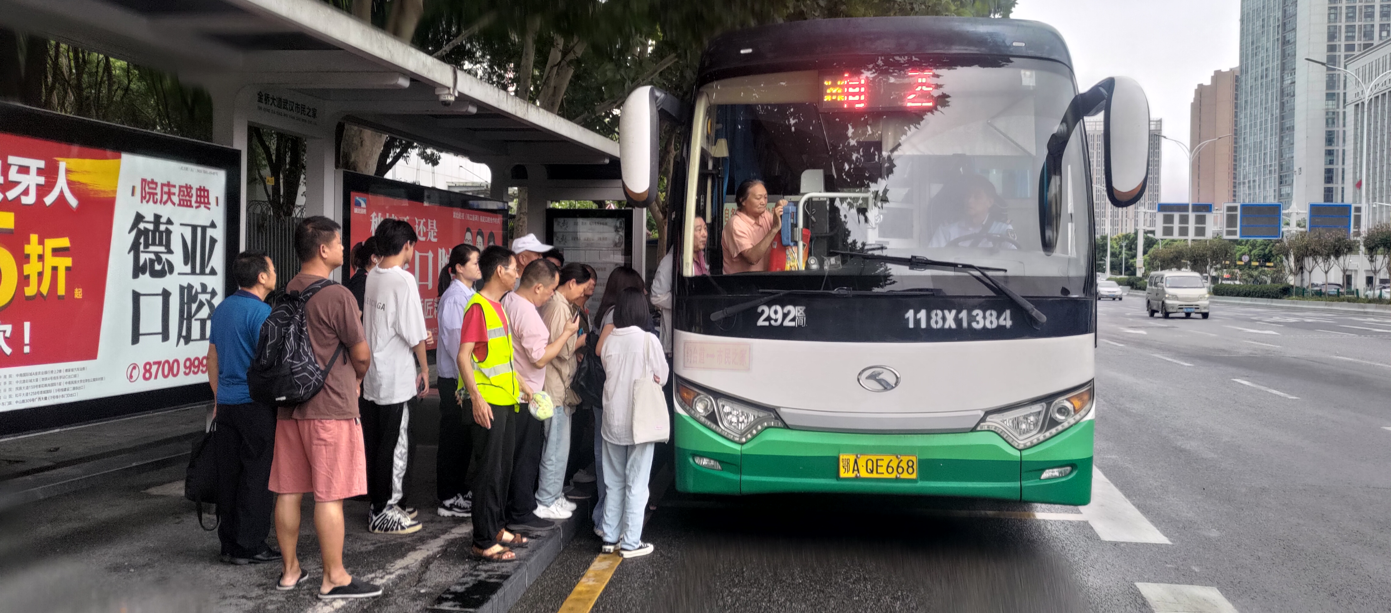 由汉口火车站开往黄陂钓台道新客运中心的公交292路,从9月12日起执行节日运营计划,全天运力增加到50台;遇返乡客流井喷时,采取“上满人就发车”运营模式的同时,线路还分别在汉口火车站公交枢纽、黄陂钓台道客运中心各储备3至5台车辆运力,一旦出现客流井喷,立即投入运营,力保返乡乘客及时疏散。