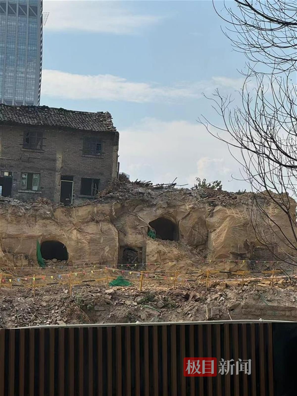 9月14日下午,极目新闻记者来到武夷滨江小区看到,挖出的几个洞穴位于一处工地内的半山腰上,周围拉起了警戒线,工地封闭管理并正在施工。通过武夷滨江小区二楼,可明显看到四个洞穴。其中两个洞口大开,另外两个洞口则砌上了砖石。