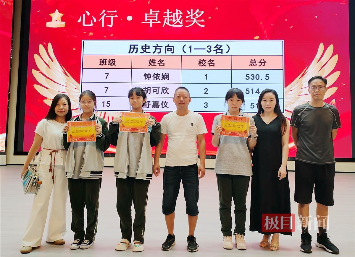 高三(1)班学生曾子馨这次考了607分,是全校物理方向第一名,还分别以139分、107分、92分夺得英语单科第一名、数学单科第二名、生物单科第三名,多次上台领奖。她说,最开心的是最后的大奖是爸爸给颁的,回家她要把奖状和奖金收藏好,激励自己继续努力。“老师们很有心!我家孩子以前不是很勤奋,在老师们的引导下,她变化很大。希望她在高三这一年尽力突破自我。”专门请假来为女儿颁奖的曾先生说。