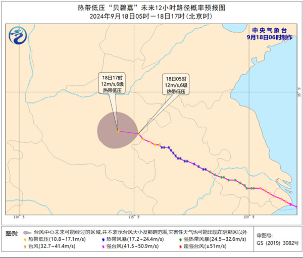 预计,“贝碧嘉”将以每小时5-10公里的速度向偏西方向缓慢移动,强度继续减弱。