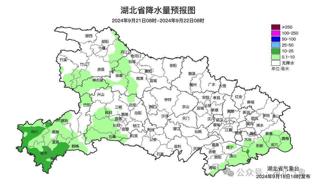 21日08时-22日08时,鄂西北、鄂西南、鄂东南多云有分散性阵雨或雷阵雨,局地中雨;其他地区多云,局地有阵雨或雷阵雨。最高气温恩施地区30~34℃、其他地区24~28℃,最低气温17~22℃,偏北风4到5级、阵风6到9级。