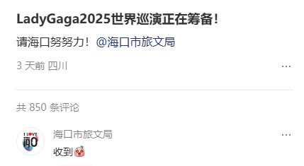 “侃爷”试听会的大获成功也让歌迷粉丝增加了信心,纷纷@海口旅文局,让其努力邀约歌手艺人。
