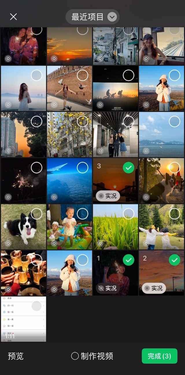 打开朋友圈-从手机相册选择,即可选中并发布实况照片,照片将包含动态画面和声音。发布时,也可以点击关闭实况效果,支持静态照片与实况照片混合发布。