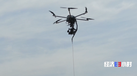 在延庆,一家企业生产的系留无人机通过一根光电线缆与地面连接,在空中停留时可以搭配挂载信号基站、摄像头等设备,既能定点监控、通信中继,还能应急救援、高空作业。