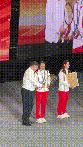 郑钦文将巴黎奥运会夺冠时使用的网球拍赠予母校。