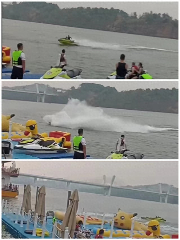 多名网友发布的现场视频显示,9月22日,一名男子驾驶摩托艇玩漂移时发生侧翻,人摔进水里不知去向……记者通过现场标志物发现,事故发生地是重庆市合川区东津港湾水上乐园。